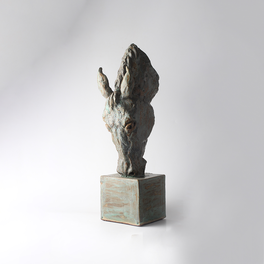 A striking vertical horse head sculpture, capturing motion, grace, and quiet strength.