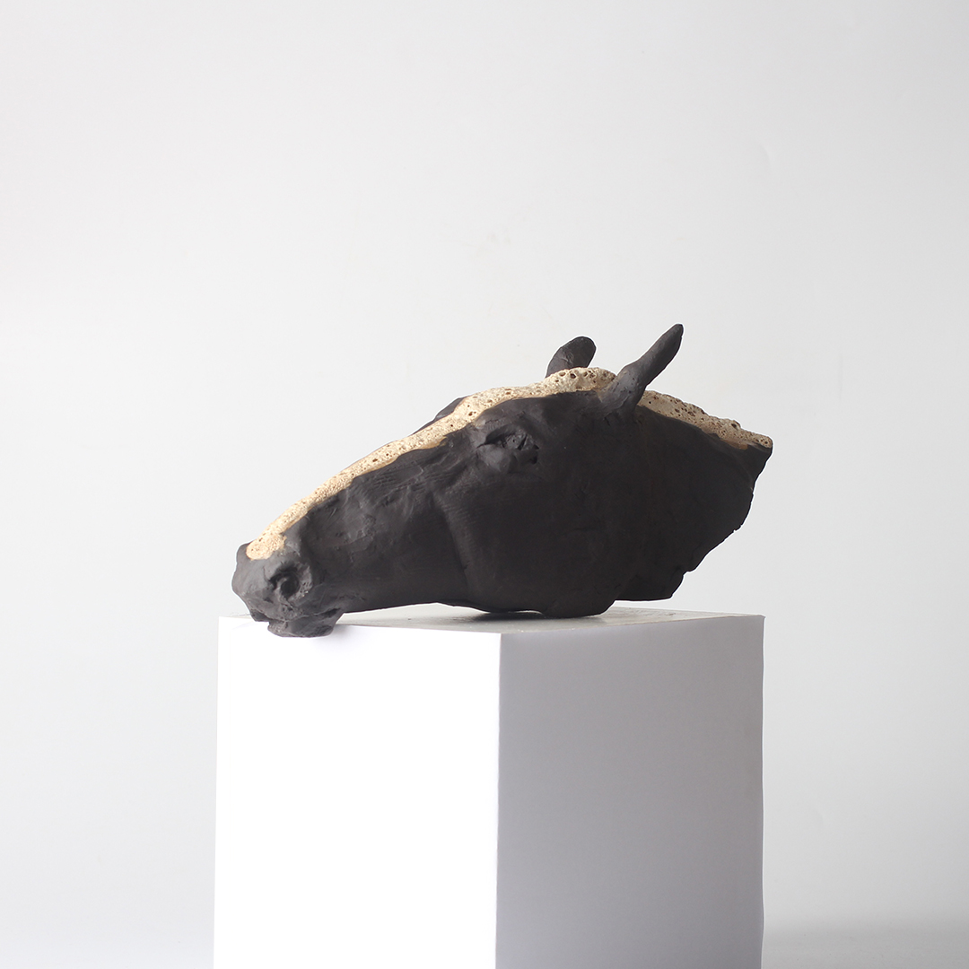 Shadowmane captures the still strength of a horse at rest — matte black form accented by a textured beige mane, bold and defined.